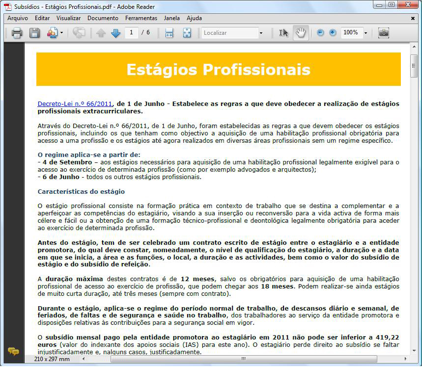 • Estágios profissionais - Concessão de apoios técnicos e financeiros a Estágios Profissionais nas Empresas, promovido pelo IEFP;
